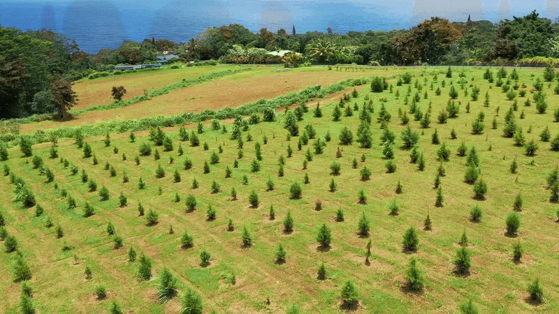 Only 1,000 trees available this holiday season. Guarantee your tamily's tree now - grown fresh right here on the Big Island.